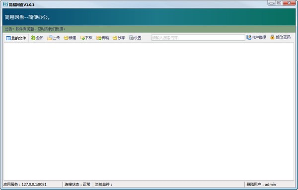 简易网盘是一款在局域网的网盘软件,可以快速进行文件传输,还可以根据部门选择用户权限管理,从而使得文件传输更加方便和高效,只用于文件传输,因为是C/S结构的!【软件特点】