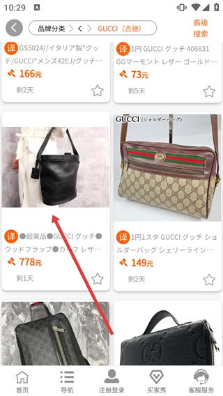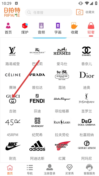 2. 在轻奢品牌清单里挑选【古驰】,随即进入古驰商品清单页面。