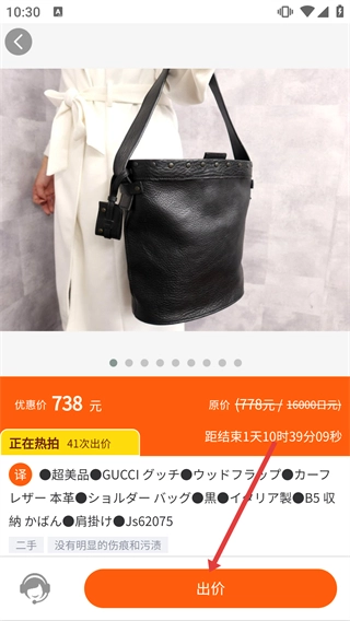 4、于商品详情页面,点击【出价】按钮,即可参与商品竞拍活动。