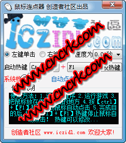 鼠标连点器是一个很有用的免费小软件,如果你在平时的游戏或是工作中经常需要大量点击鼠标左键或右键,如果你喜欢玩网络游戏,rpg游戏,那么一定有大量点击鼠标的经验,非常浪费时间,浪费精力,消耗鼠标!这个小软件可以解放你的手指啦!只要按下热键,让鼠标自动点击器帮你点击吧!鼠标点击速度可以调节,鼠标左键右键也可以选择