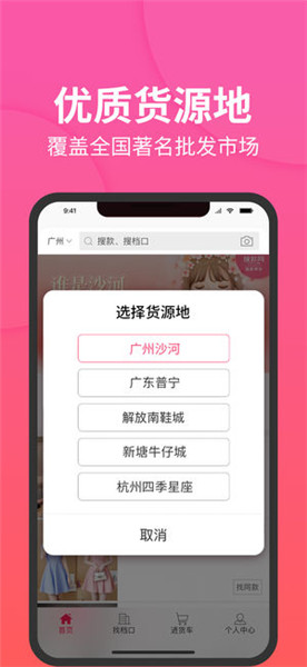 搜款网覆盖全国知名的服装批发市场,包括广州沙河,十三行,白马,南城,解放南鞋城,广东普宁等一手货源批发市场,连杭州四季青、四季星座的档口都从这里进货。优质的女装、男装、童装、内衣、鞋、箱包低价源头货源,任你挑任你选。
