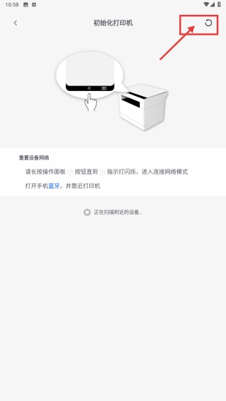3、进入打印机初始化界面,按照指引进行操作,或者点击界面右上角的图标,即可完成打印机添加。