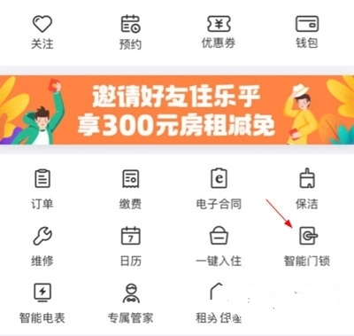 2. 接下来,我们仅需在个人中心页面,找到【智能门锁】功能,点击它就能修改密码了。