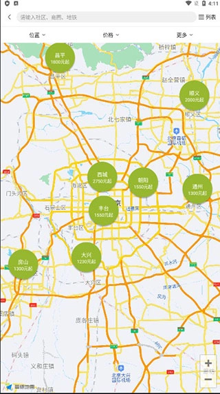 3、能够通过地图找房,周边的地理环境清晰呈现。