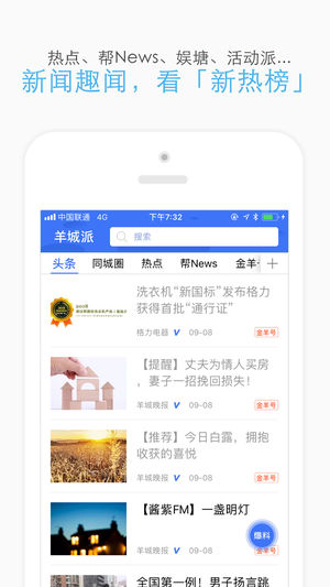 一、新热榜“新热榜”版块基于四通八达的羊城晚报采编网络,全天24小时实时放送广州和珠三角本地热辣新闻,用户可以和羊城晚报的记者并肩在第一现场,和省长对话,看杨洋破纪录,听TFBOYS诉衷肠……见证最快、最真、最权威的新闻。