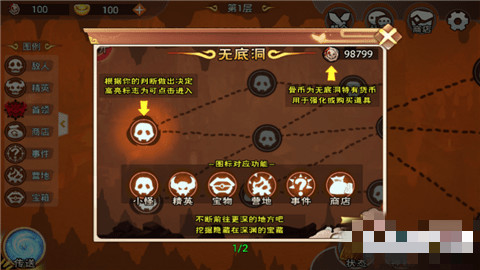 1、无底洞大冒险游戏在这里,你可以前往无底洞冒险,无底洞中每一层都会生成随机的路线。2、超过50位各具特色的英雄在等着你招募,去无底洞里寻找他们吧,无底洞大冒险游戏充分利用他们的特点击败敌人。