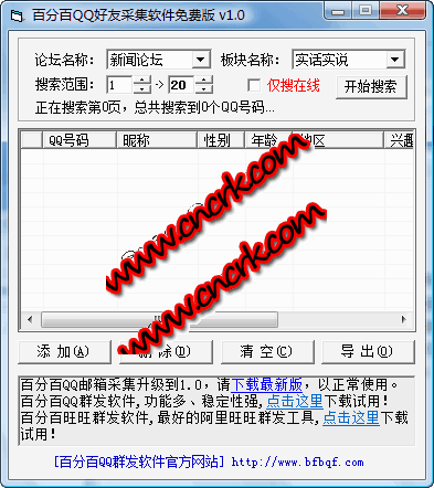 百分百qq好友采集软件免费版,一款可以有针对性的提取qq号码、qq邮箱的工具,软件具有提取速度快、针对性强、简洁易用的特点,该软件完全免费可以自由传播,但未经作者允许请勿擅自做版权修改,违者必究!该软件可以配合百分百qq群发软件使用,以达到最佳的使用效果。
