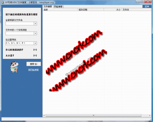 XP风格WIN7文件搜索 :win7取消了以前xp中搜索文件的方式,许多朋友感觉到不便,因此我开发了这么一个仿xp搜索的小工具,希望大家喜欢。