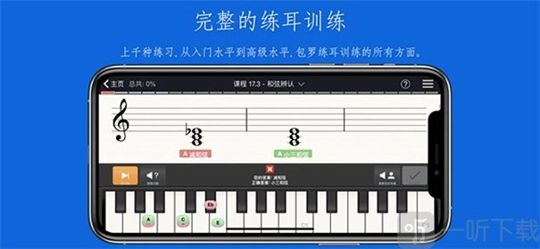 2、助力用户准确练习各类和弦,使用户能够轻松掌握和弦辨认、和弦转位以及和弦进行等技巧。
