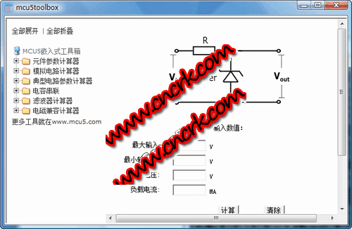 嵌入式工具箱(mcu5toolbox)是一款完全免费的专业级的嵌入式工具箱,是mcu5.com其中一部分功能的脱机版,它能够让您得方便的使用电子电路设计中常用的辅助工具。在硬件设计中,有如下小工具。元件参数计算器,模拟电路计算器:音箱分频器计算器-迟滞比较器计算器-差动放大器;典型电路参数计算器:惠斯登电桥计算器- 场效应管缓冲区偏差计算器-恒流源计算器-dc计算器-dc电路计算器-电功率计算器-电容串联计算器-感抗与容抗计算器-电阻分压计算器-并联电阻;滤波器计算器:运算放大器低通滤波器计算器-运放高通滤波器计算器-带通滤波器设计计算器-r-c滤波器截止频率;电磁兼容计算器:电磁兼容(emc)| w, dbw 和 dbm转换计算器-电磁兼容(emc)| v, dbv 和 dbuv转换计算器-电磁兼容(emc)| dbuv 和 dbm转换计算器-j型发射天线尺寸在线计算器