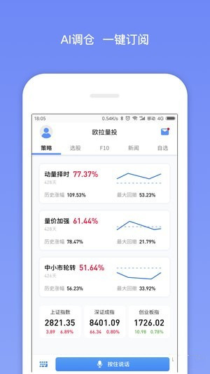 【人工智能炒股策略】无论短线还是长线,欧拉量投app都有对应的自动交易策略供您参考。