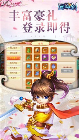 酒仙剑手游火爆来袭!这是一款采用回合制战斗玩法的萌系RPG手游,辽阔唯美的仙侠世界中,百族林立,玩家将跟随引导一路披荆斩棘,还有萌宠跟随系统,无CD战斗系统,让你可以体验快乐修真的乐趣!最Q萌的角色,最华丽的组合技能,最霸气的神兽坐骑,还有独创修仙玩法和实时跨服竟技,绝对high翻全场,还能邂逅红颜知己,浪漫双修,玩转仙侠世界!