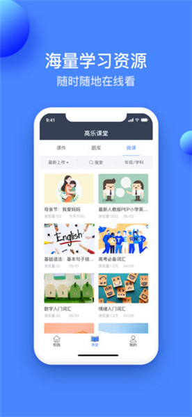 高乐云教育app提供专业的课程管理功能,在高乐云教育平台你可以收到学校的通知,老师可以对学生进行有效管理,高乐云教育app是一款教育学习类型软件,布置作业等等功能!高乐云教育平台积极打造的针对教育行业的o2o开放平台。高乐云教育app是基于公司在线下和线上教育研发和实践经验的沉淀、对教育与网络技术融合的深度洞察和对行业资源的有效整合三大核心功能基础上的覆盖教育、学习全网的开放式平台,