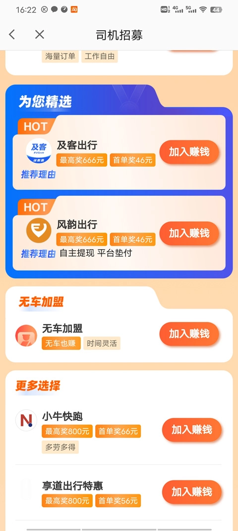 3、挑选一个你希望加入的司机平台,点击进入该平台。