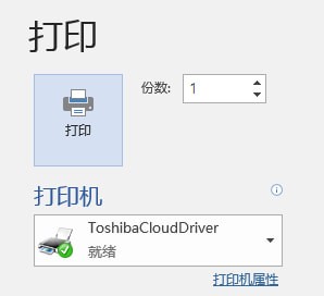 打开需要打印的文件,此处以Word文档为例。选择“打印”,并在打印机列表中选择“ToshibaCloudDriver”,设置相应的打印属性,点击“打印”按钮。