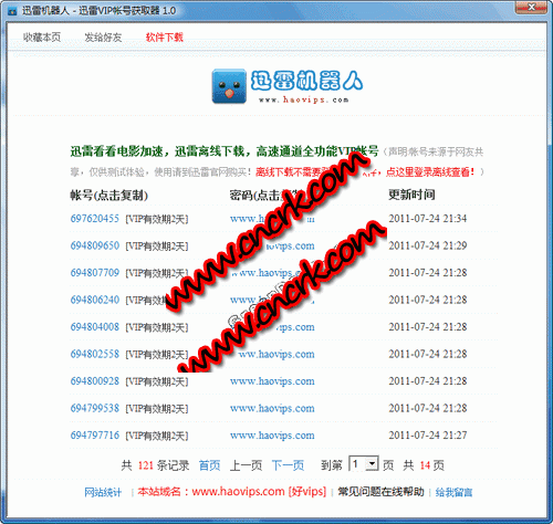 迅雷机器人,网友公布的大量迅雷vip帐号