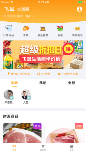 飞耳APP,以打造用户周边5公里生活圈为目标,为商户提供通过互联网做周边人群的生意,APP围绕日常生活中的消耗品: 柴米油盐、牙刷牙膏、水果蔬菜、饮料、酒水、到买菜、洗菜、做饭等等这些每个人日常生活中必不可少的商品,把最近的商品推荐给客户,确保最快最好的服务。