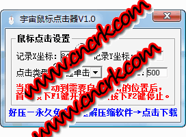 宇宙鼠标点击器 V1.1 绿色免费版 宇宙鼠标点击器,本软件能够为你自动点击鼠标而解放你鼠标手,远离亚健康。四种点击类型,肯定有适合你的!
