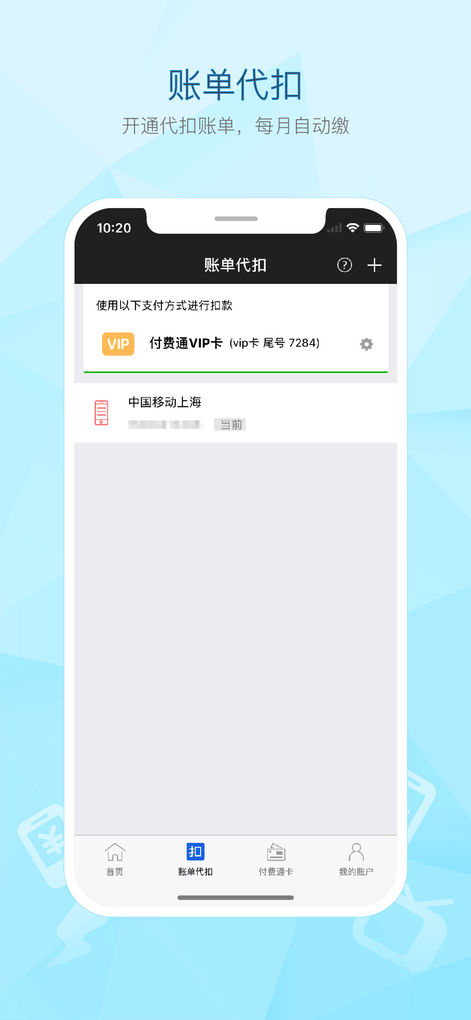 4.账单代扣:申请账单代扣,每月账单自动缴。