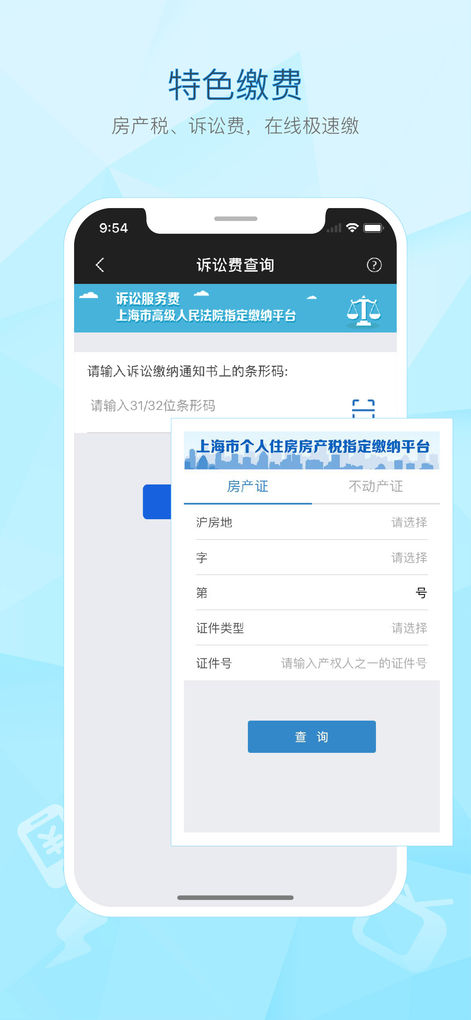 官方指定房产税、法院诉讼费缴纳平台,首次实现手机支付。