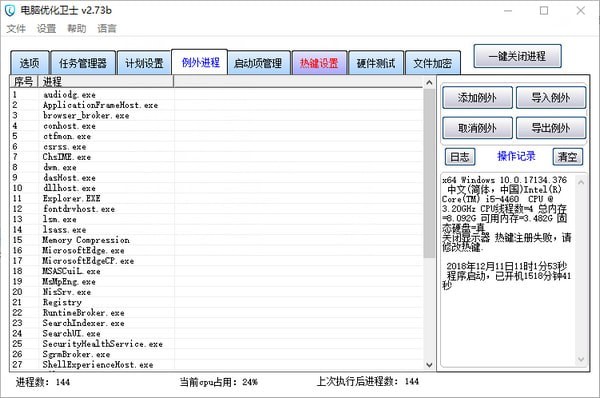 4.一键关闭进程,用于修复加了很多启动项的电脑,一键关闭所有非系统进程后就可以清理电脑了。