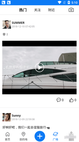 4.我们开放在谊猫app里的社交广场,在这里我们可以看到别人分享的旅游路线,了解更多的旅游体验,了解地域风情、自然风光、人文历史,对旅游有更深层次的了解!