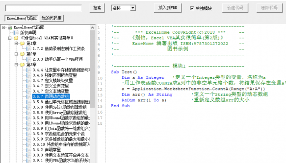 - ExcelHome代码库:包括ExcelHome论坛出品的经典图书《别怕,VBA其实很简单》中的大量实用代码,以期帮助大家在工作学习中快速的实现相关功能。- 我的代码库:供用户保存和管理个人的宝贝代码。