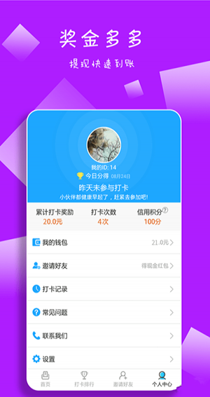 3、未在次日早晨6:30-7:30内进行打卡(例如:已过打卡时间)视为打卡失败,打卡失败不可参与当日挑战金的分配。