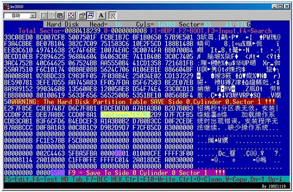 1、在dos下运行,kv3000硬盘救护王界面如下: