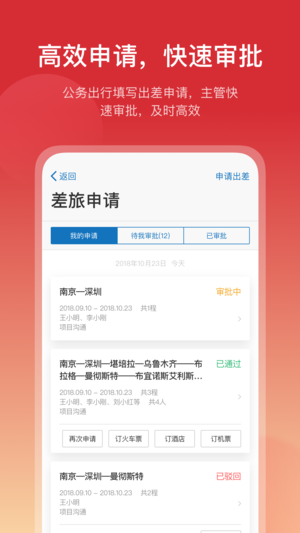 1.【差旅管理】高效申请,快速审批:公务出行随时随地发起出差申请,快速高效;管理者实时接收信息审批,便捷!2.【机票预订】国内外航班预订:便捷、可靠、专业;覆盖所有航线,安全支付、即时出票!?3.【酒店预订】国内外酒店预订:优惠、便捷、保障;丰富的酒店资源,快捷的酒店导航,承诺入住保证!?4【火车票预订】高铁动车、普通列车等火车票,国内火车票随心订!