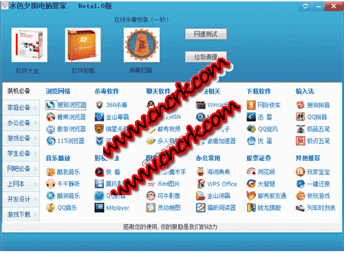 水色夕阳软件管家 V1.4 绿色免费版 水色夕阳软件管家是一款便捷的软件。它每天提供最新最快的中文免费软件、游戏、主题下载,让你大大节省寻找和下载资源的时间,另外软件管家依靠强大的软件数据库还能让你清楚了解你手机上安装的软件,强大的卸载能帮用户彻底删除恶意和流氓软件,是一款装机必备的好软件。