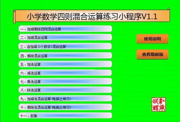 四则混合运算练习软件提供海量四则混合运算练习题,适合小学三年级以下及幼儿园学龄儿童使用。