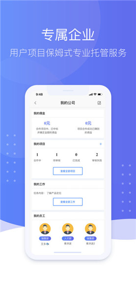 用户可创建自有企业板块,共享平台提供的人力资源;