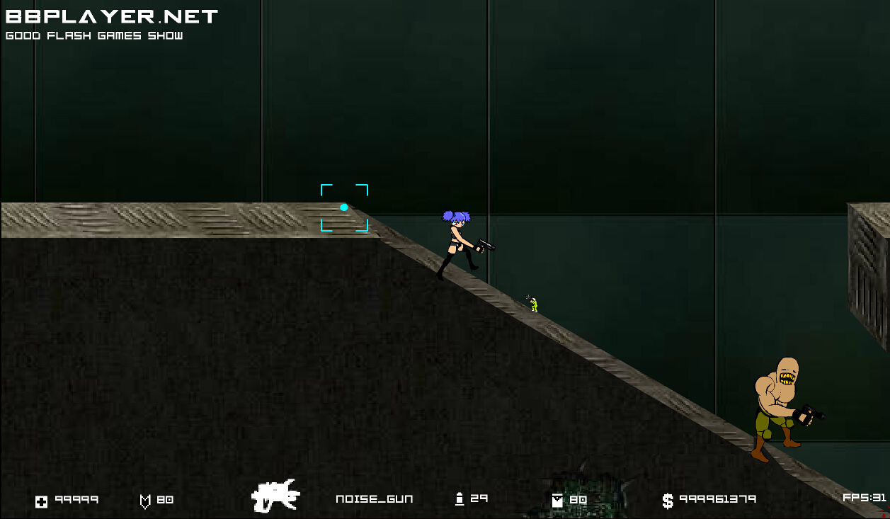 第七关:三把noise-gun……跳不上的用大跳,实在不行同时按左右两键,人物会向左上角飞(可以穿墙)不过有些阴。