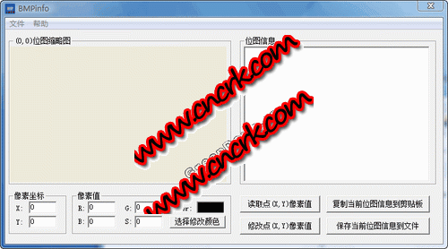 bmpinfo是一个主要用于查看位图信息的小工具,可查看包括位图文件基本信息,位图文件头信息,位图信息头信息等,也可以对位图的像素值进行修改。方便图像处理和相关编程时验证相关参数。目前支持二值图像,16色图像,256色图像,24位真彩图像和32位真彩图像,但后两者某些读取后显示其像素值颜色有误差。