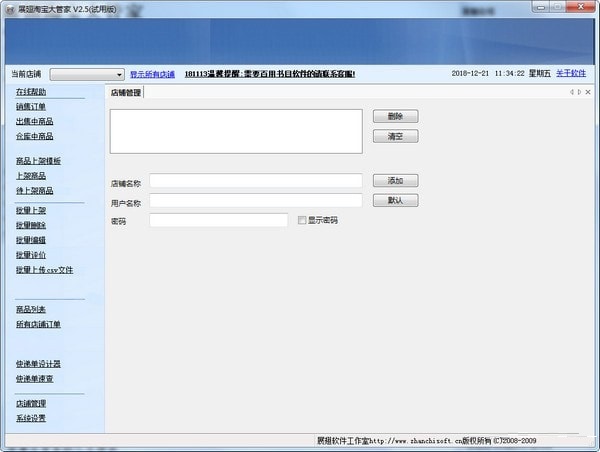 展翅淘宝大管家是一款淘宝店铺管理软件,软件可以批量修改宝贝名,批量添加或删除宝贝,整理店铺上架商品信息,批量查询订单等等功能,是一款不错的淘宝商家助手。【软件特点】