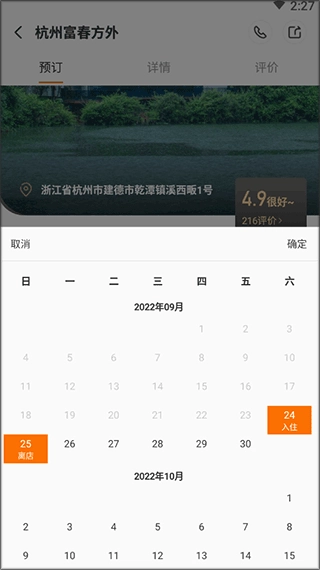 3、只需选择你打算入住的时间就行。