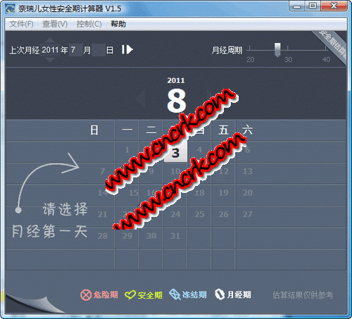 奈瑞儿女性安全期计算器 V1.5 绿色免费版 女性的安全期计算方法是:排卵日期一般在下次月经来潮前的14天左右。除了月经期和排卵期,其余的时间均为安全期。许多人认为,在安全期性交可不必采用任何避孕药物和避孕工具。但是奈瑞儿提醒各位姐妹,安全措施还是要做好哦。也有些女性朋友想了解自己的安全期以便安排怀孕。为了方便女性朋友们计算自己的安全期,奈瑞儿特地写了这个软件,帮助你更好地选择避孕或怀孕。本次升级更新美化了程序界面,使操作更加简便直观,更容易上手