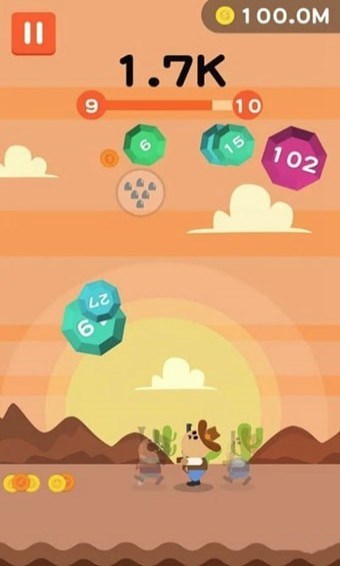左右滑动控制角色,保证子弹可以击中上面的岩石子弹火力越集中,就越能将球球击的更加碎,球球更小,它的威力也就越小了
