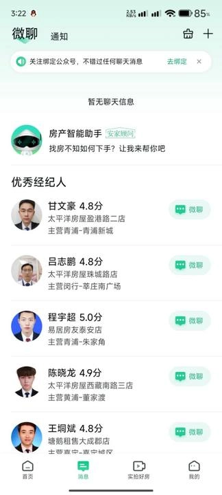 2. 轻点消息,便能查看与租房经纪人的聊天记录以及通知。