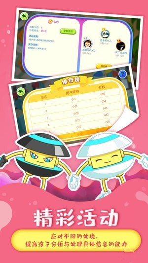 不同于传统的对弈软件,本品的精彩活动以围棋对弈规则为基础,每月更换不同细节规则,让孩子试着应对不同的处境,提高分析与处理具体信息的能力。排名靠前的用户还能获得各种道具奖励。每天有积分获取上限,不用担心因为耗时过长影响视力。