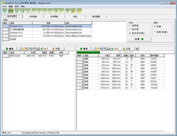 8、丰富的外围功能,原材料库管理、余料入库管理、标签打印、数据导入导出、BOM(物料清单管理)、自动生成零件清单、自动导入原材料、 与Excel交换数据;