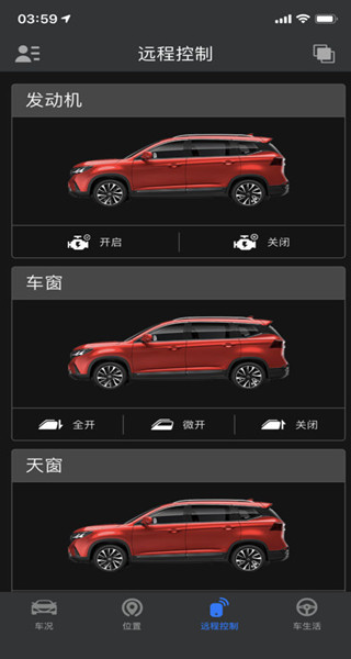 4.远程控制包括车门的控制、车窗的控制、后备箱的控制、远程鸣笛闪灯。