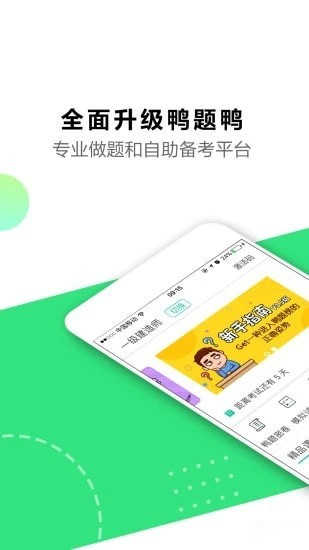 鸭题鸭遵循名师+训练+管理服务三位一体培训理念,以20万+道试题,40万+用户的做题数据为依托,用大数据分析技术预测考题。考试项目有:人力资源管理师、一级注册消防工程师考试、教师资格证、建造师、心理咨询师、法考、执业医师、执业护士、执业药师、等22个考试项目 。