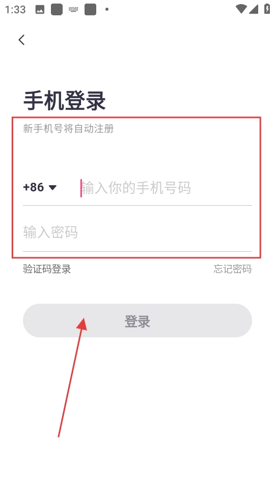 3、填写手机号码与密码,点击登录以完成操作。