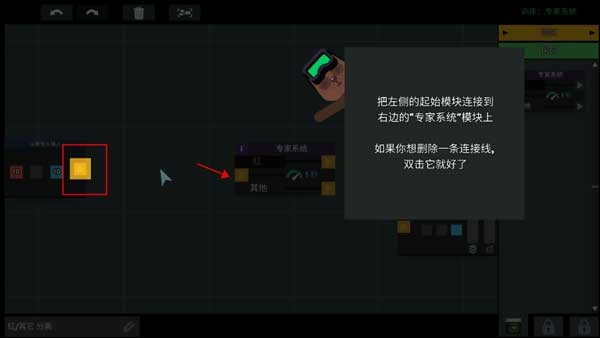 6、接着,将左侧的起始模块连接至右边的“专家系统”模块。要是你打算删除某条连接线,双击该连接线即可。