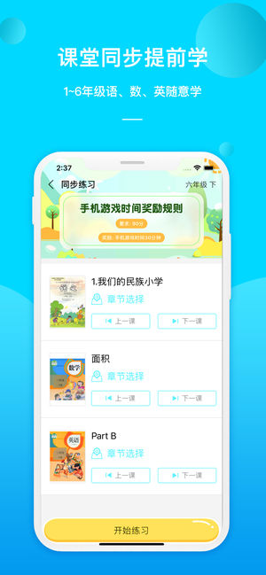 1、学习管控:在线学习结合手机防沉迷管控功能,彻底解决传统在线教育APP在实际使用过程中,孩子拿着手机不学习偷玩游戏的现状。2、同步课程:全国小学课本同步全覆盖,“同步资源”、“同步习题”、“同步检测”三大板块紧紧围绕的课堂教学,提供教学、练习、检测一体化学习服务;