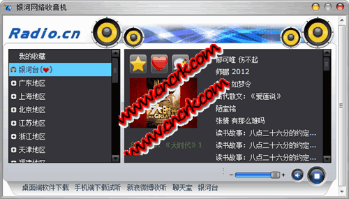 银河网络收音机,集成了国内所有电台直播及精品节目点播推荐。这款收音机软件可以听到全国几乎所有的广播电台~ 而且还有精彩点播节目推荐,非常的好用。没有广告无毒无马绿色.体积小巧,界面实用。