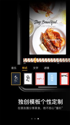 可以在不影响模板品质的前提下,自定义贴纸、滤镜、音乐与文字等内容