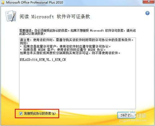 2、开始安装后,会出现许可协议界面,勾选接受此条款,并点击继续,进行安装;
